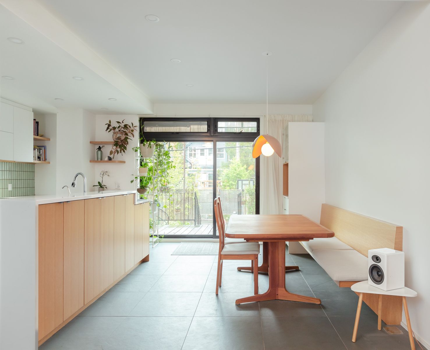 Cette famille du Plateau souhaitait ajuster sa demeure aux besoins actuels de leur maisonnée : offrir une chambre plus spacieuse à leur adolescente, décloisonner les pièces attenantes à la cour pour créer une aire de vie ouverte, augmenter l’apport de lumière naturelle et bénéficier d’une cuisine digne des aspirations culinaires du chef à domicile.