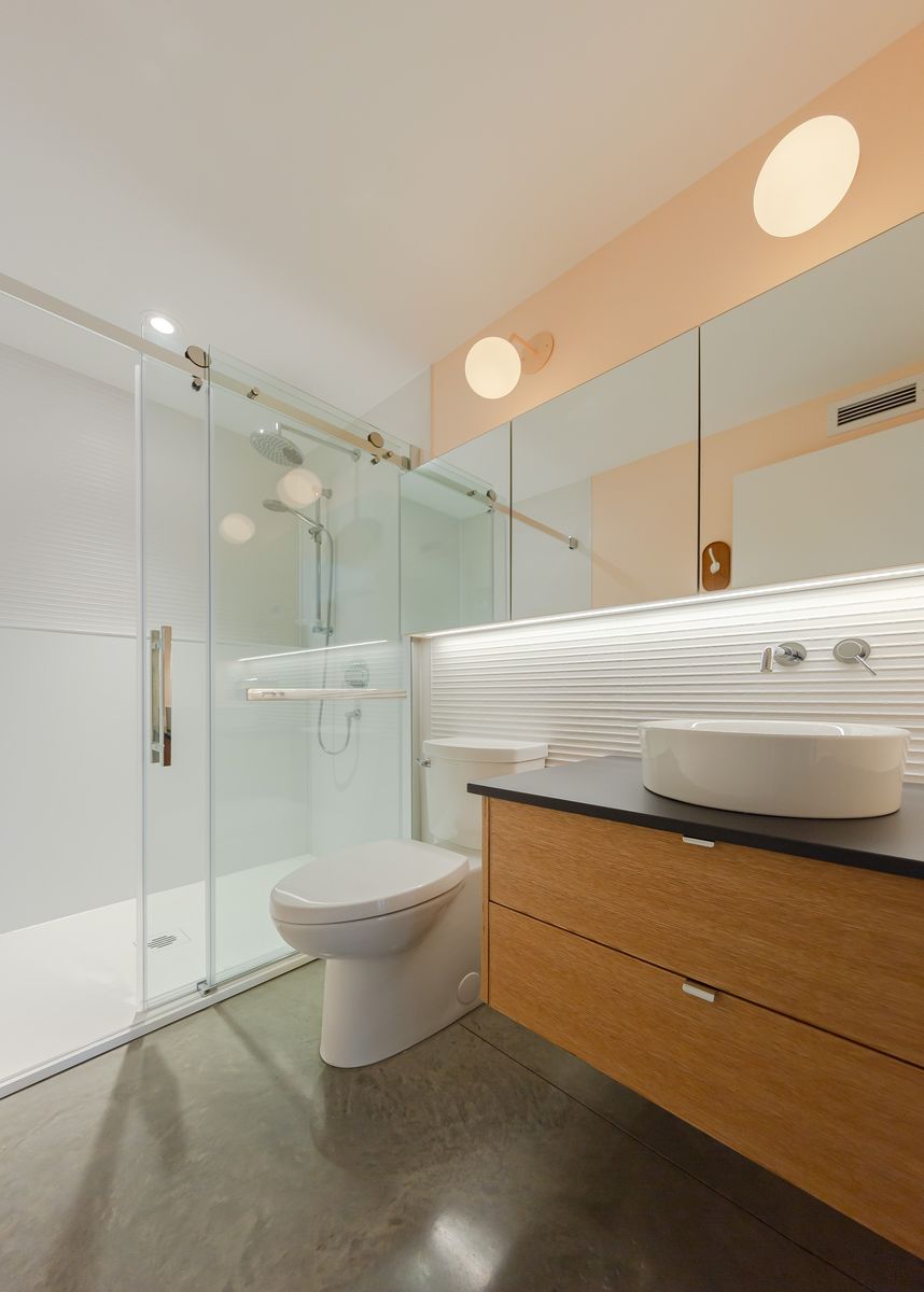Pour sa nouvelle maison écologique nichée dans les bois, la propriétaire souhaitait créer une ambiance à la fois sobre et chaleureuse. Conçus pour appuyer cette intention, les éléments de mobilier intégré optimisent les espaces avec délicatesse et les matières se complémentent tout en douceur; laissant la place d’honneur aux « tableaux de la nature » créés par l’abondante fenestration.