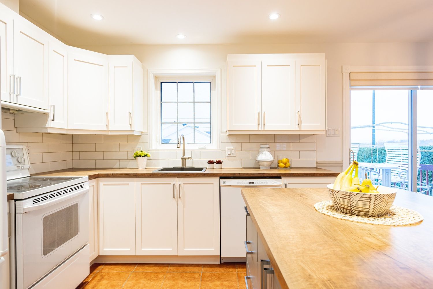 Refacing de la cuisine : modernisation complète en conservant les caissons d'origine et en remplaçant les portes pour un style épuré et contemporain. Mise à jour de l'éclairage avec des luminaires modernes, apportant chaleur et luminosité à l'espace