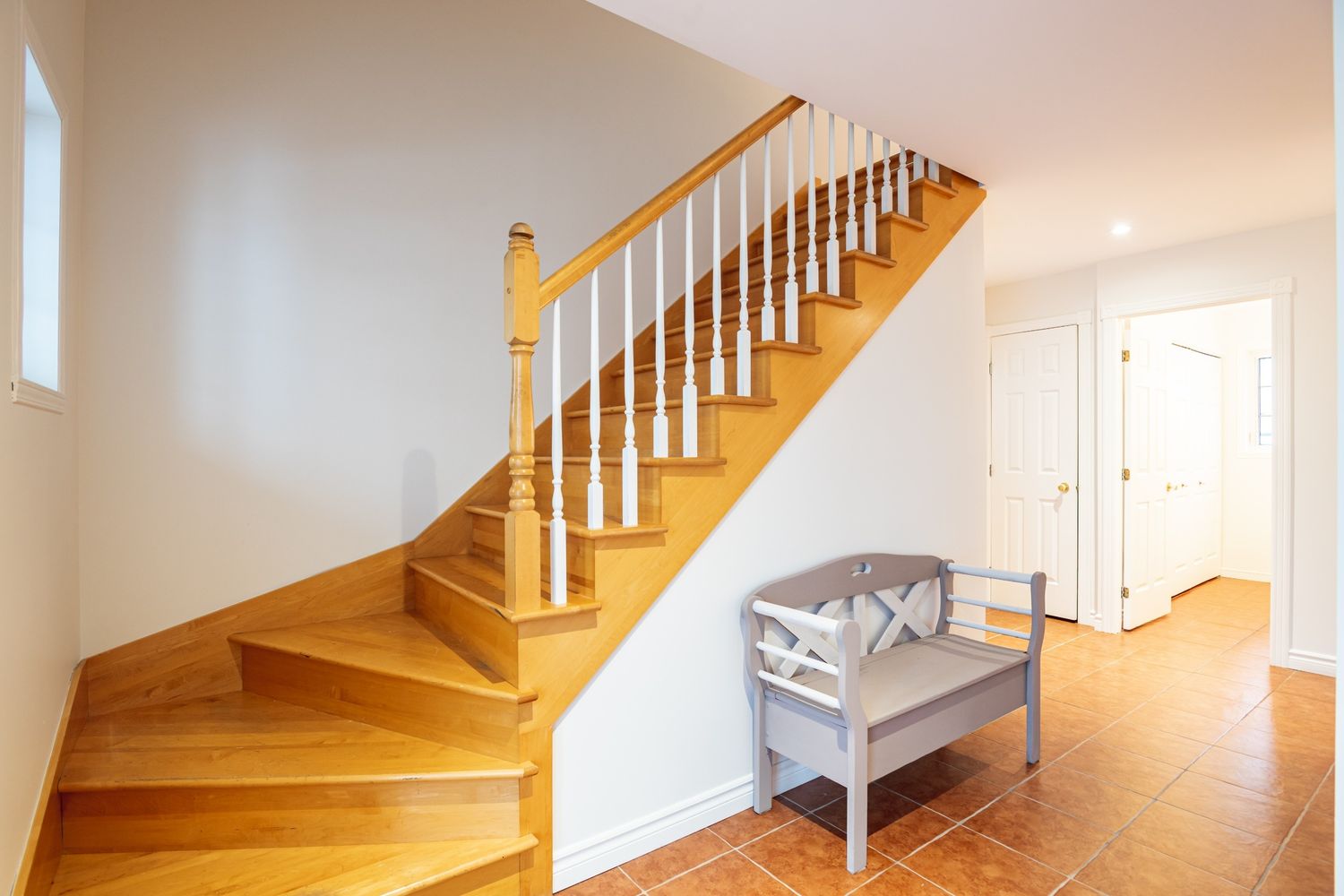 Le banc de l'entrée a été métamorphosé avec une finition mate et douce, apportant un aspect rustique et raffiné qui s'intègre parfaitement à l'espace d'accueil.