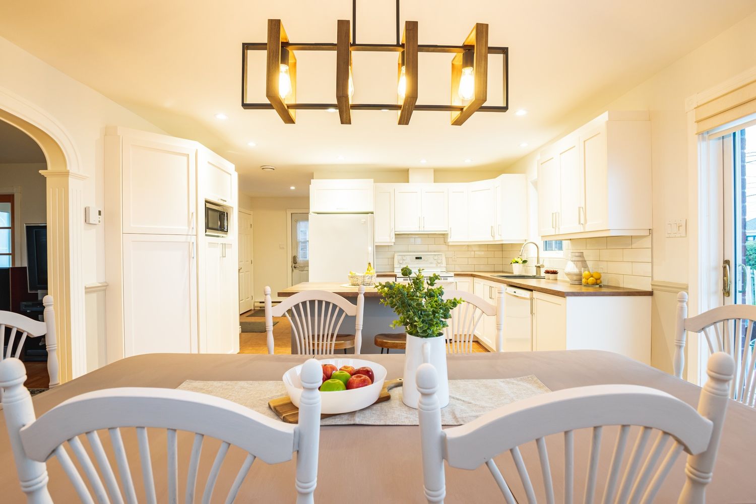 La table à manger et ses chaises ont été rafraîchies avec une peinture à la craie au fini velouté, révélant un style intemporel et lumineux. Ce relooking met en valeur le mobilier tout en conservant son charme naturel, pour une ambiance conviviale et harmonieuse