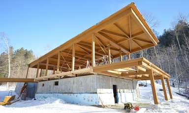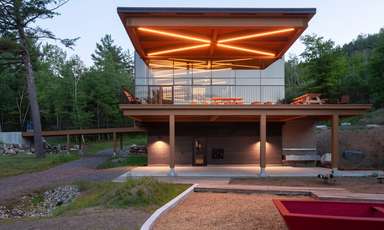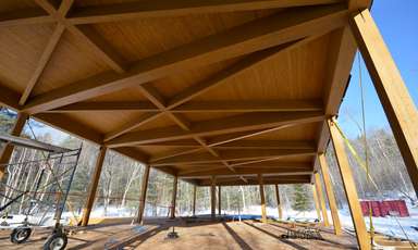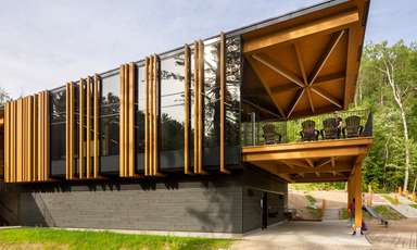 Prix Cécobois, fabrication structure en bois lamellé-collé du chalet d'accueil de la Sepaq Temiscamingue Recherches associées Façade avant Abitibi-Témiscamingue