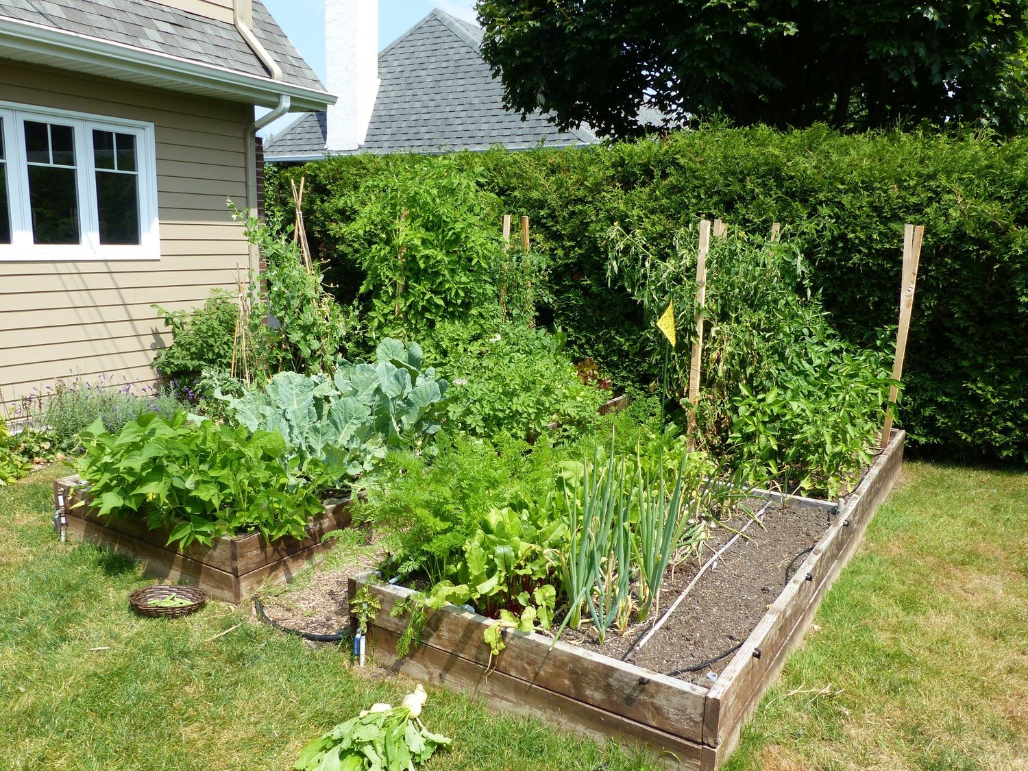 Conseils et accompagnement dans le design, la mise en place et la culture d'un potager en bacs surélevé de petite dimension.
