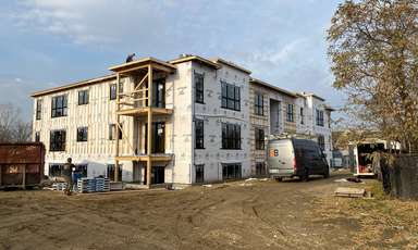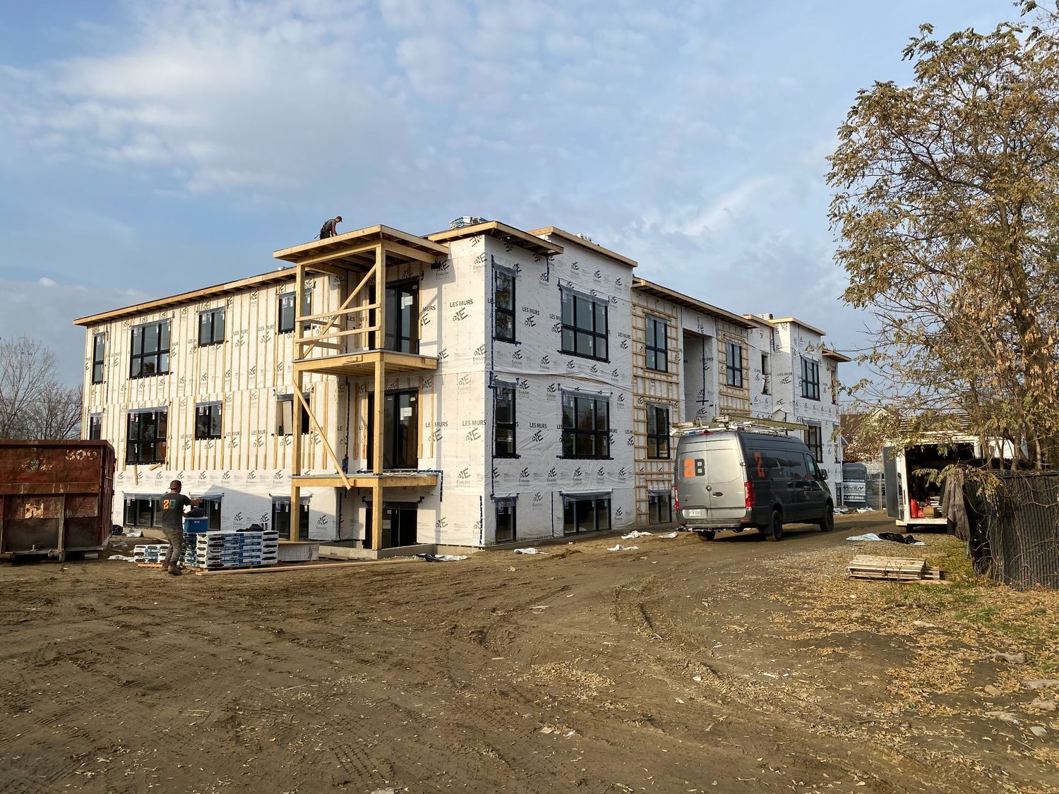 Charpente de bois d'un 15 logements à St-Jérôme Recherches associées Travaux - Extérieur Saint-Jérôme/Blainville (Laurentides) Entreprise de charpente Entrepreneur en charpente Construction neuve Charpentier Charpente