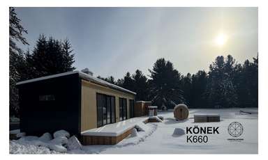 Constellations lance un projet pilote de Konek K660, une unité locative écoénergétique de deux chambres fermées, conçue pour le court terme et entièrement préfabriquée en usine.