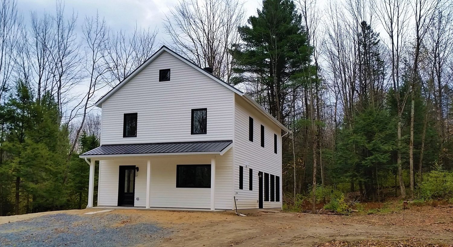 C'est une maison sur deux étages d'une simplicité efficace, elle est construite à la limite de l'Estrie et du Centre-du-Québec, un milieu splendide au début des vallons des Cantons de L'Est.