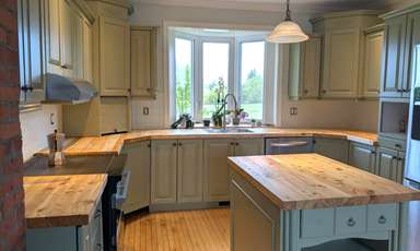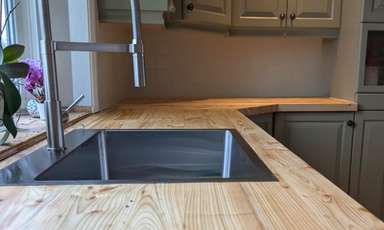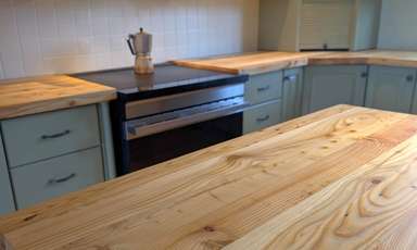 Magnifiques comptoirs de cuisine fabriqués à partir de bois recyclé sur les chantiers de construction. Essences de bois variées et huilé avec une huile 100% écologique.