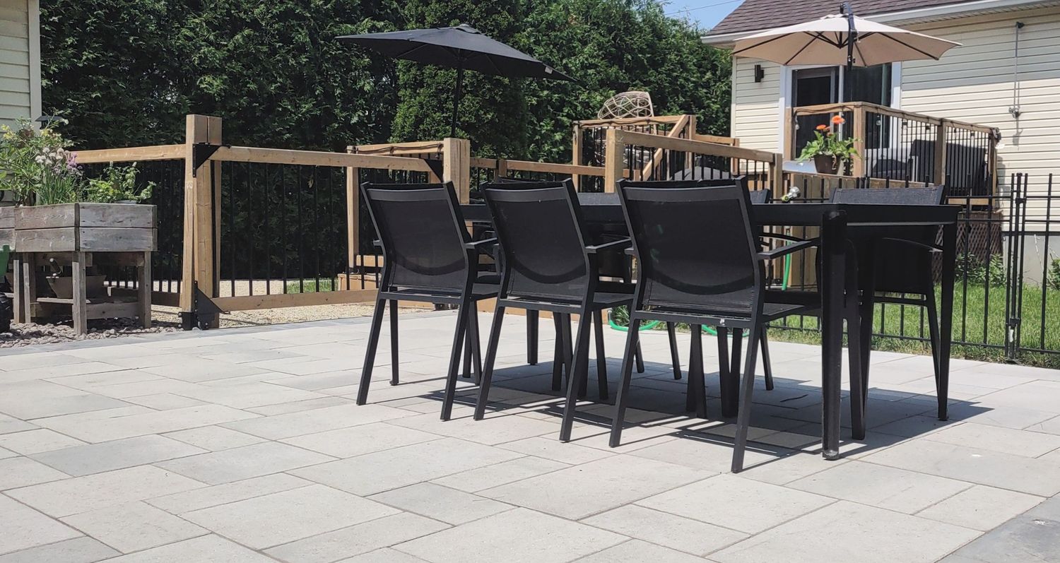Les propriétaires avaient besoin de transformer leur cour arrière en un espace accueillant, fonctionnel et sécuritaire. Avec un enfant en bas âge et des chiens, ils cherchaient à réduire la terre ramenée à l’intérieur et à créer un environnement où ils pourraient se détendre et travailler à l’extérieur lors des journées ensoleillées.