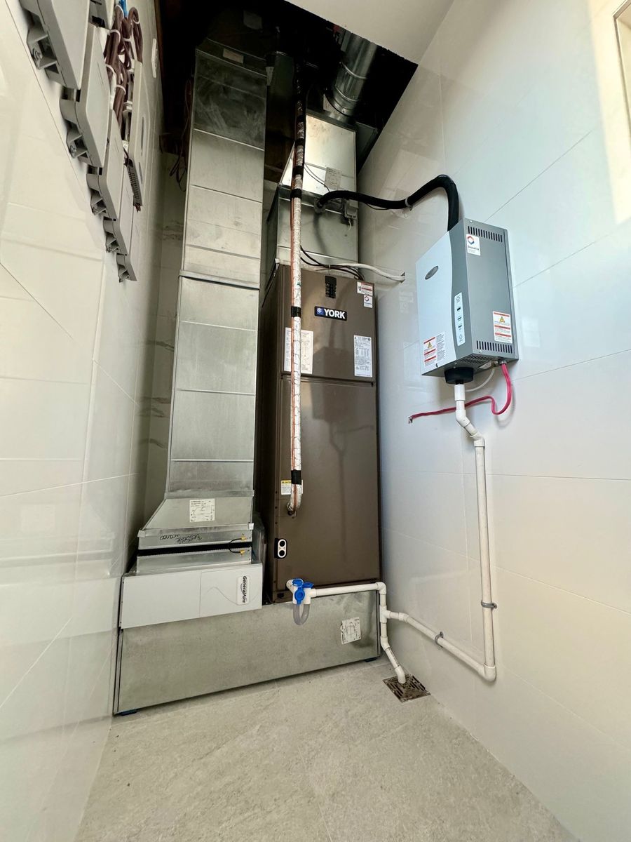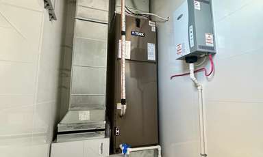 Conception d'un système central complet pour ce chalet haut de gamme. Plusieurs enjeux techniques ont été solutionné, dont la taille de la salle mécanique, qui suffisait tout juste à contenir les équipements sélectionnés par le client! L'architecture du chalet a également nécessité de porter un soin particulier à la conception et à l'installation du réseau de conduits: immenses fenêtres, plafonds haut et portion cathédrale, combiné à de petites pièces, ont nécessité de porter un soin particulier aux ajustements.