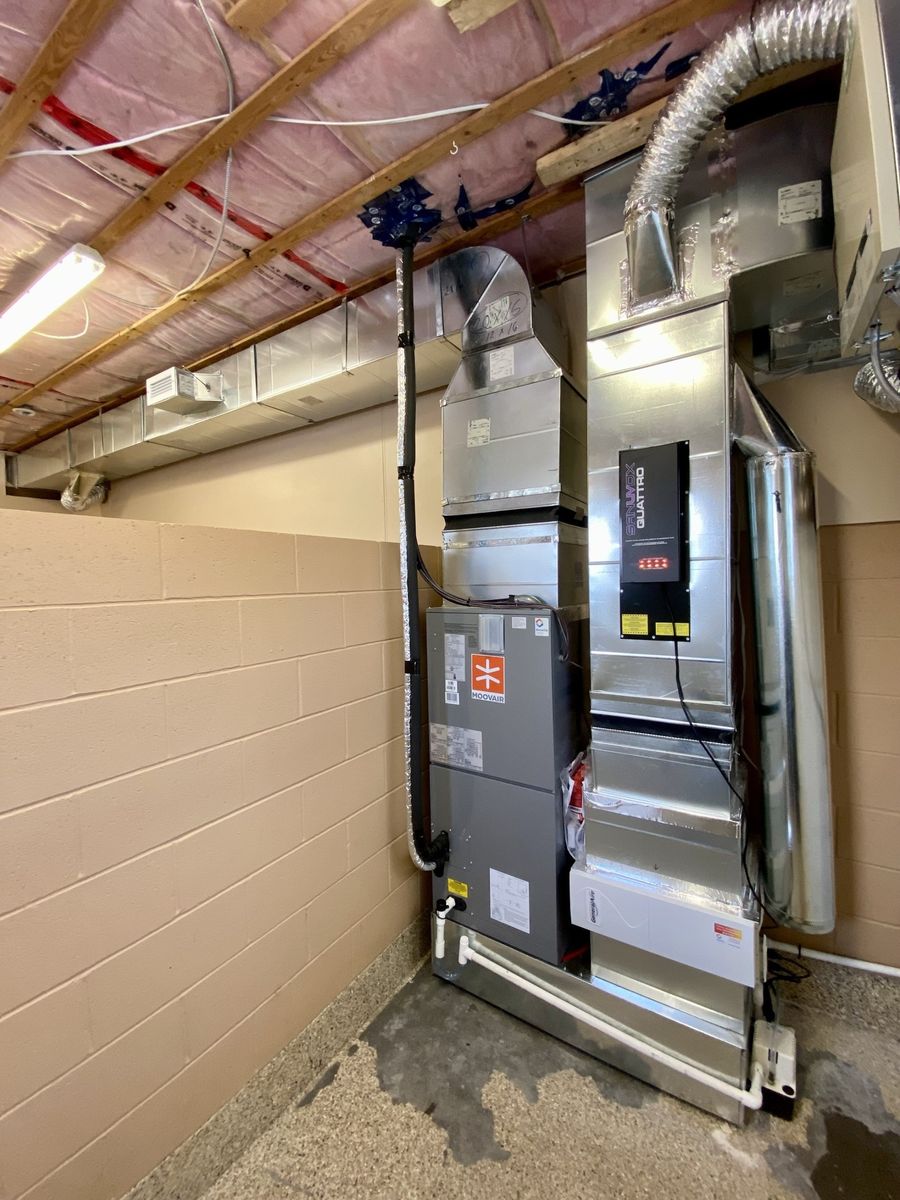 Conception et installation d'un système de climatisation, chauffage et ventilation intégrant un système de purification de l'air. En effet, en raison des opérations de ce client, le traitement de l'air était un enjeu essentiel. Nous avons donc fait l'ajout d'un système de purification performant, et intégré à la ventilation
