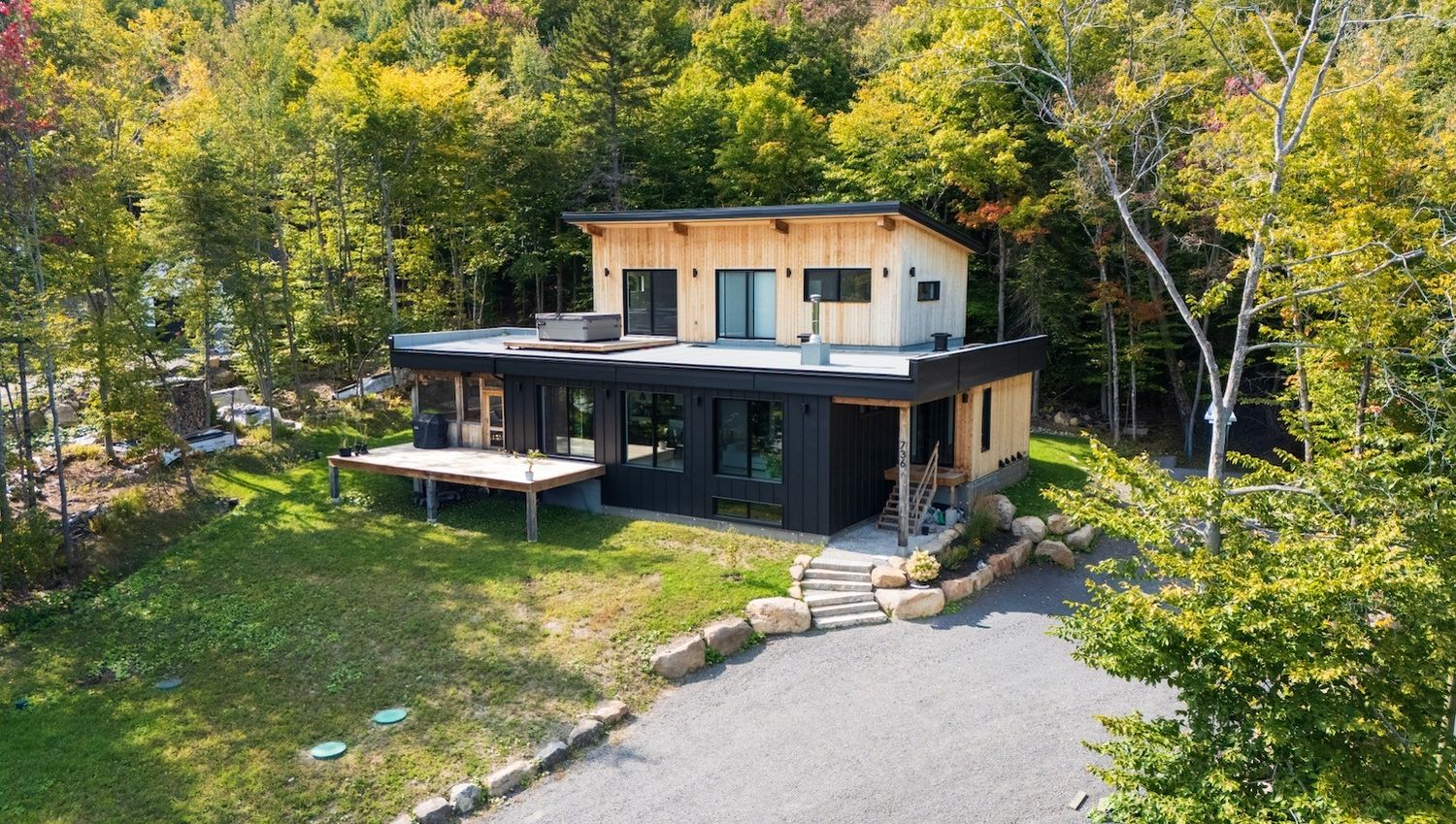 En ce qui concerne la durabilité, les choix de revêtement extérieur ont été faits en fonction de favoriser cet aspect. Les choix de nos clients se sont donc arrêtés sur le revêtement d'acier MAC et le cèdre de l'Est d'une scierie locale qui ne nécessitent aucun entretien.