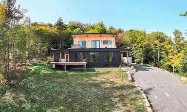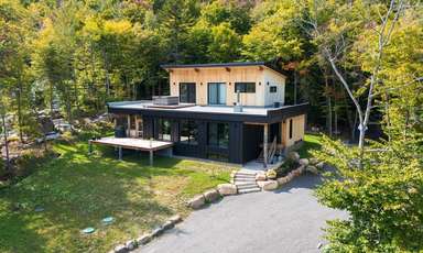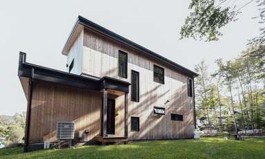 En ce qui concerne la durabilité, les choix de revêtement extérieur ont été faits en fonction de favoriser cet aspect. Les choix de nos clients se sont donc arrêtés sur le revêtement d'acier MAC et le cèdre de l'Est d'une scierie locale qui ne nécessitent aucun entretien.