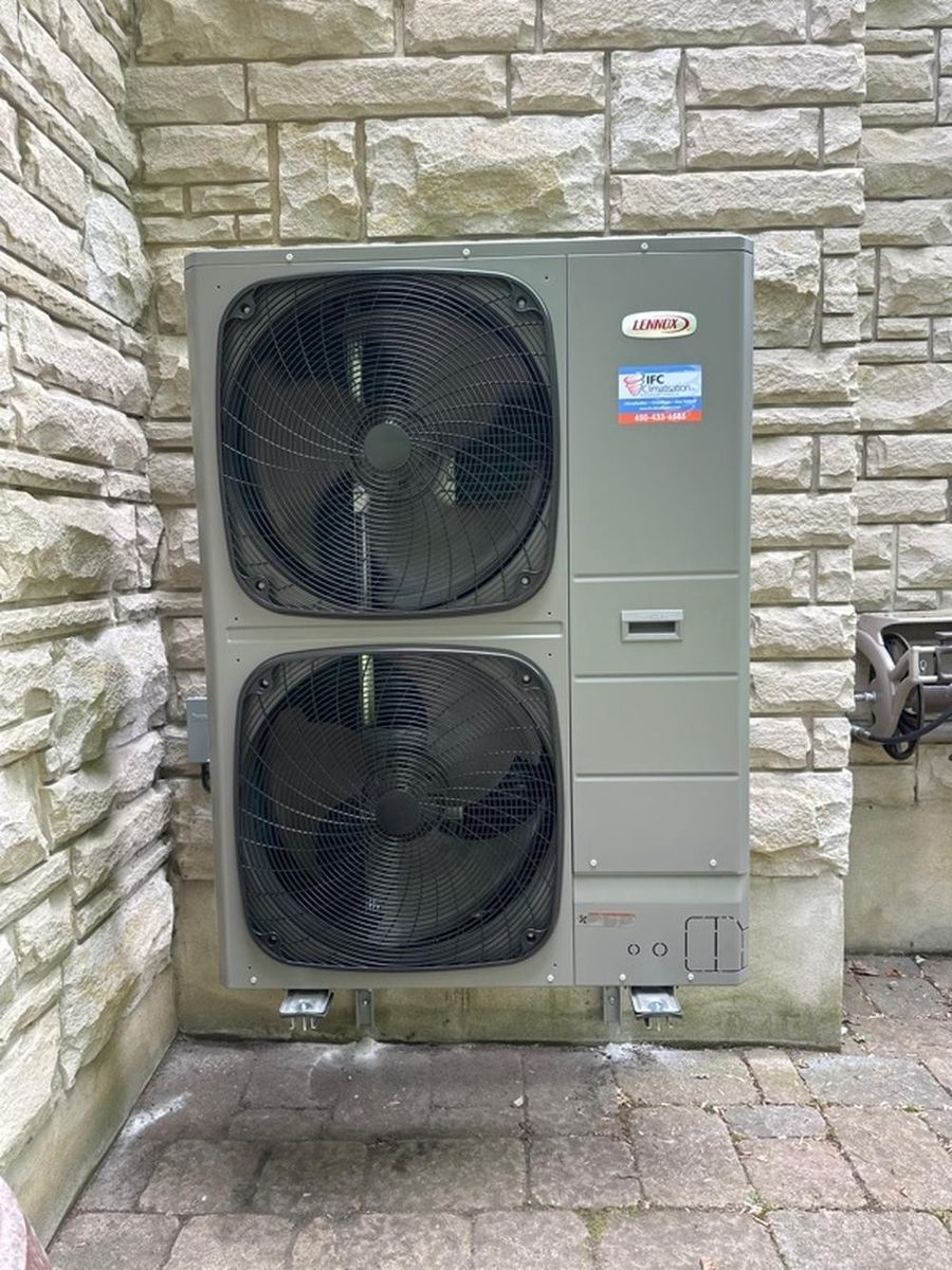 Installation d’une thermopompe Lennox Inverter au nouveau réfrigérant R-454B, conçue pour offrir une performance fiable et écoénergétique même à très basse température. Ce système réduit l’empreinte écologique tout en assurant confort et économies d’énergie en toute saison.