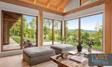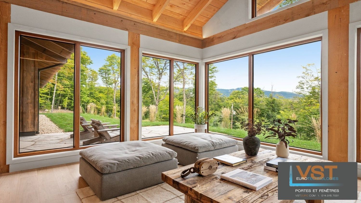 De grandes ouvertures de fenestration en uPVC, magnifique porformance thermique et un choix de couleur en uPVC qui imite parfaitement le bois!