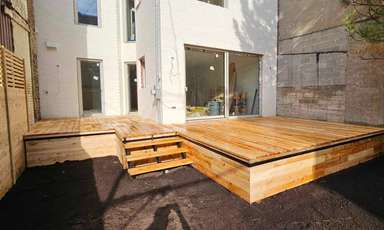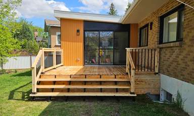 Terrasse et cabanon en cèdre de l'est avec structure en pruche