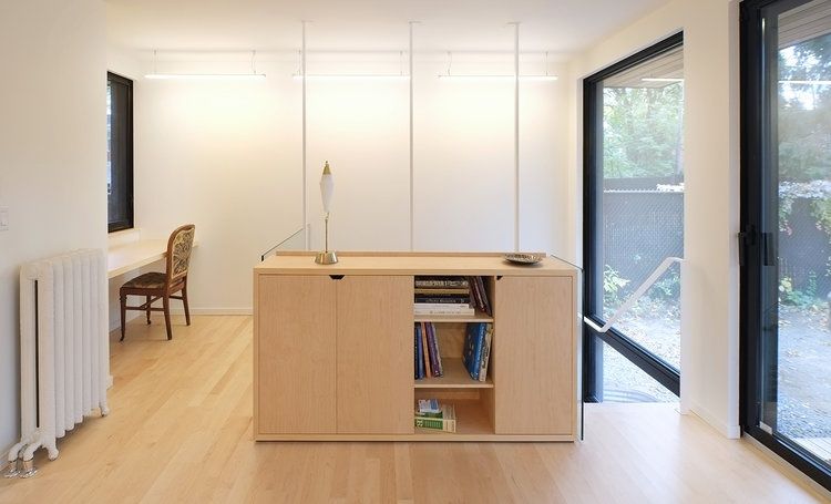 Agrandissement d’une maison semi-détachée existante pour une famille de 3 enfants. Le nouveau volume accueille notamment une salle de jeu au sous-sol, un séjour au rez-de-chaussée et une chambre des maîtres à l’étage. Les larges ouvertures de l’agrandissement permettent une entrée de lumière optimale, tout en se protégeant des extrêmes d’été,  dans les nouveaux espaces de vie donnant sur la cour arrière.