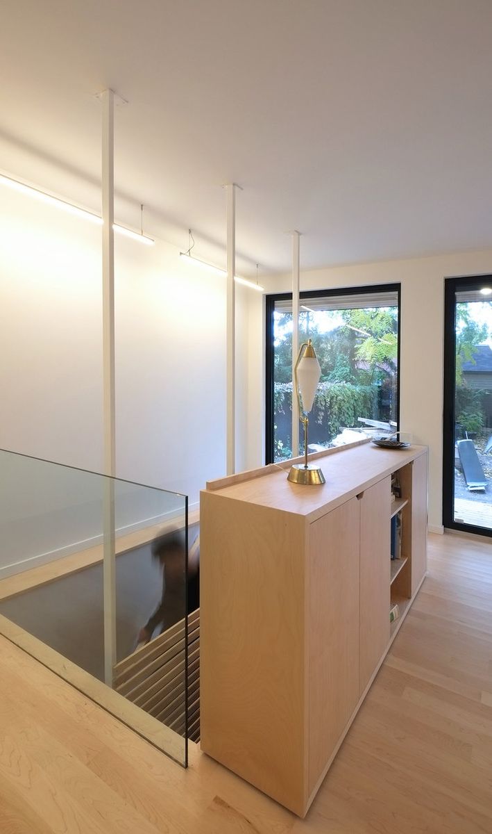 Agrandissement d’une maison semi-détachée existante pour une famille de 3 enfants. Le nouveau volume accueille notamment une salle de jeu au sous-sol, un séjour au rez-de-chaussée et une chambre des maîtres à l’étage. Les larges ouvertures de l’agrandissement permettent une entrée de lumière optimale, tout en se protégeant des extrêmes d’été,  dans les nouveaux espaces de vie donnant sur la cour arrière.