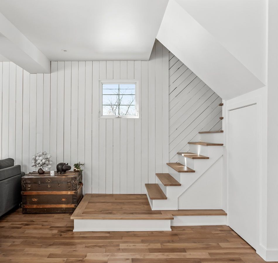 Ce projet consiste à repenser une maison existante afin d’augmenter sa surface habitable et d’actualiser les aménagements tout en mettant en valeur son caractère. La stratégie choisie fut d’agrandir la maison vers le haut en créant un nouvel étage sous combles habitables, conférant ainsi une ambiance chaleureuse. Les ouvertures ont été maximisées et une double hauteur monumentale a été créée afin d’inonder les espaces de vie de lumière naturelle. L’espace se poursuit à l’extérieur sur une terrasse généreuse donnant sur le lac Saint-Louis et surmontée d’une pergola qui contrôle l’apport solaire.