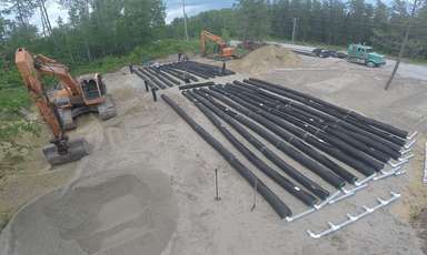 Ce projet était d’installer un système de traitement des eaux usées qui serait partagé par une communauté composée de 8 maisons dans la région de l’Abitibi, au Québec. Le système devait supporter un gros volume d’eau usée et garantir qu’il n’y aurait pas d’infiltration d’eau mal traitée dans le lac. Chaque maison collecterait ses eaux usées dans sa propre fosse septique.