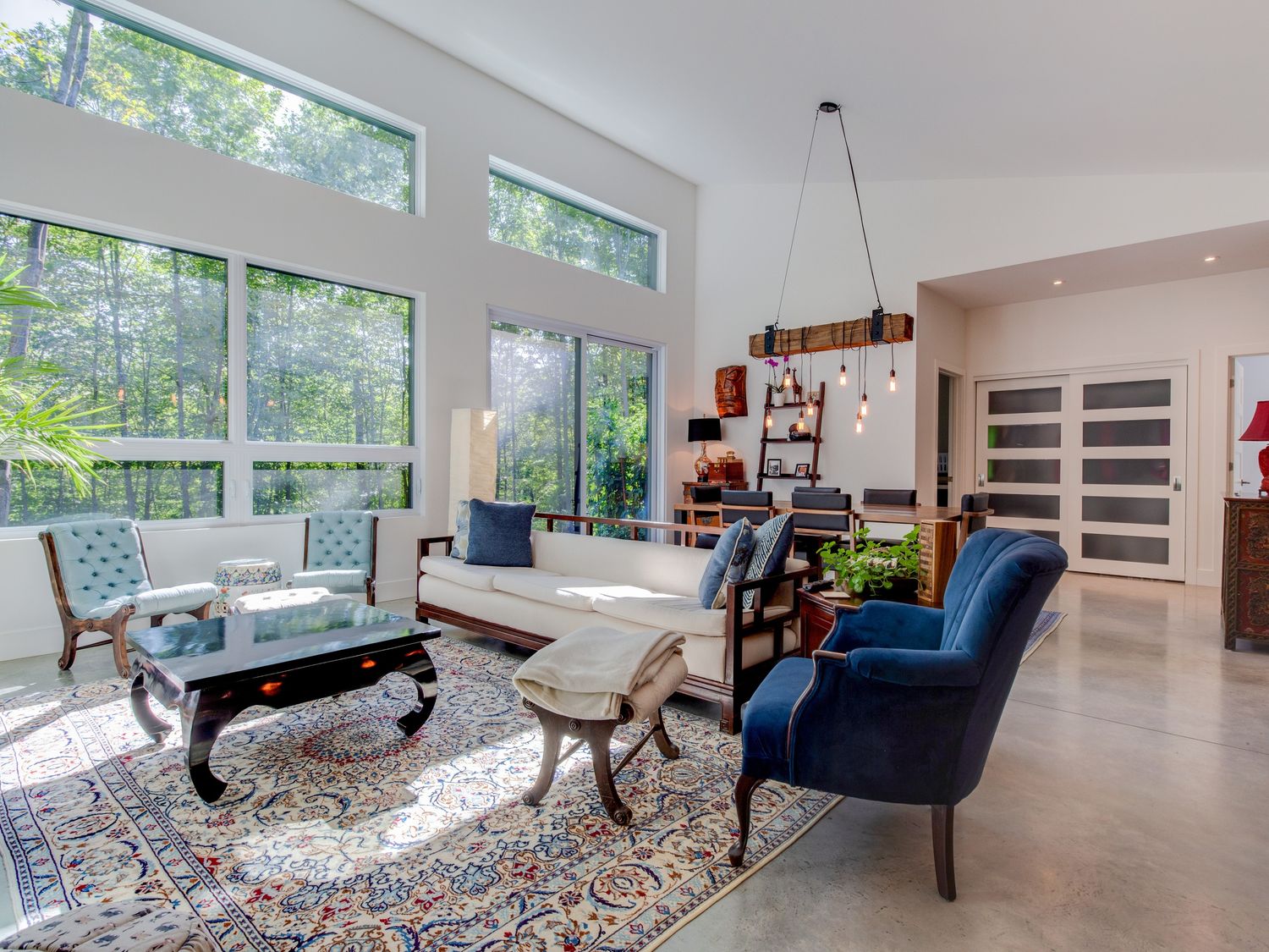 Ce projet contemporain certifié LEED V4 niveau Or et Novoclimat, est situé dans un boisé. Nos clients tenaient à inclure leurs deux passions dans la conception: la musique et le voyage. La maison est de plain-pied, pour profiter d’une accessibilité universelle et minimiser les espaces inutiles. Les clients planifient  fonder une famille dans cette maison, c’est pourquoi les chambres (3) des enfants se situent d’un bord et la chambre des maîtres de l’autre.