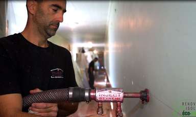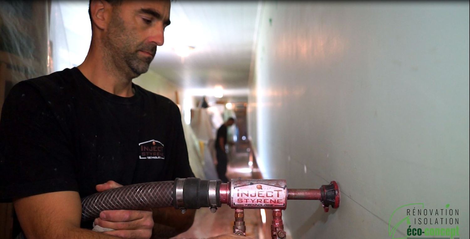 Ajout d'isolant dans es murs creux. Valeur ajouté R-10.75. Temps des travaux: 1 journée. Aucun déchet de construction et nous avons recyclé plus de 80 p3 de polystyrène post-consommation.