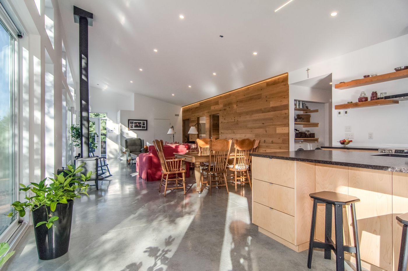 La maison est certifiée Novoclimat et son excellente performance énergétique repose principalement sur l’enveloppe du bâtiment bien isolée et extrêmement étanche, la fenestration à triple vitrage, l’orientation Sud et la performance du VRC.