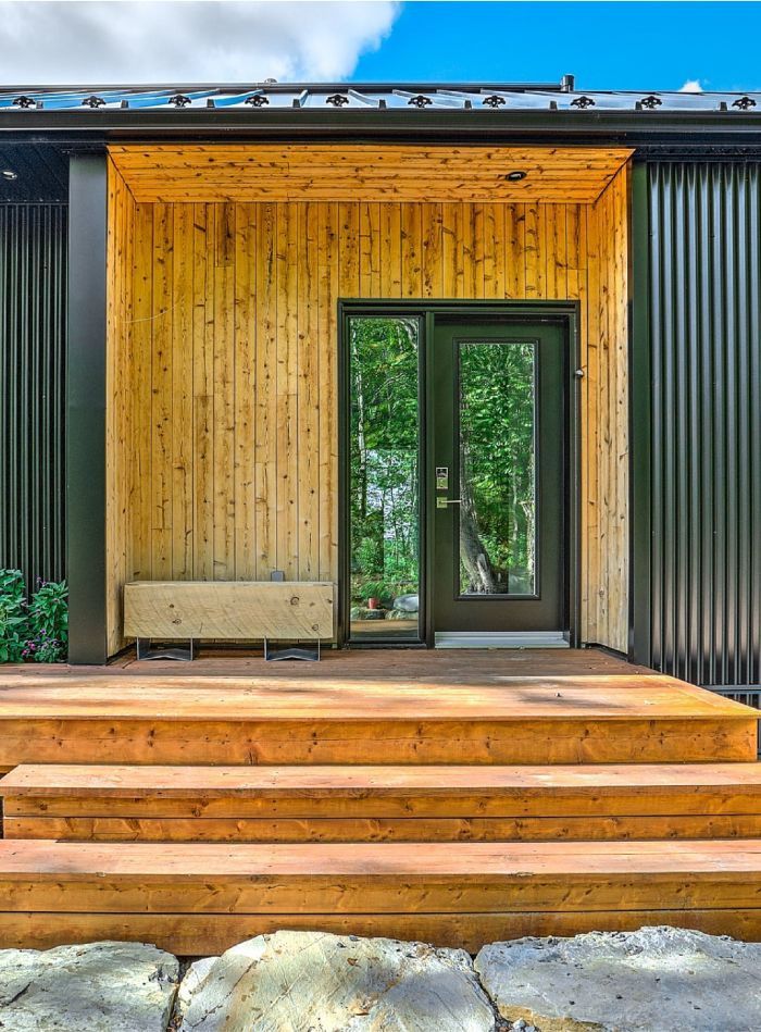 La maison écologique RDC + RDJ de Luce et Paul, se fond parfaitement avec son environnement. Les propriétaires souhaitaient quitter la métropole et s’installer sur leur beau terrain, dans les contreforts du Mont Orford. Leur maison certifiée Novoclimat se distingue par ses lignes franches, structurées et par des teintes contrastées : le tout crée des espaces élégants, modernes sans être froids.