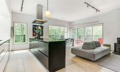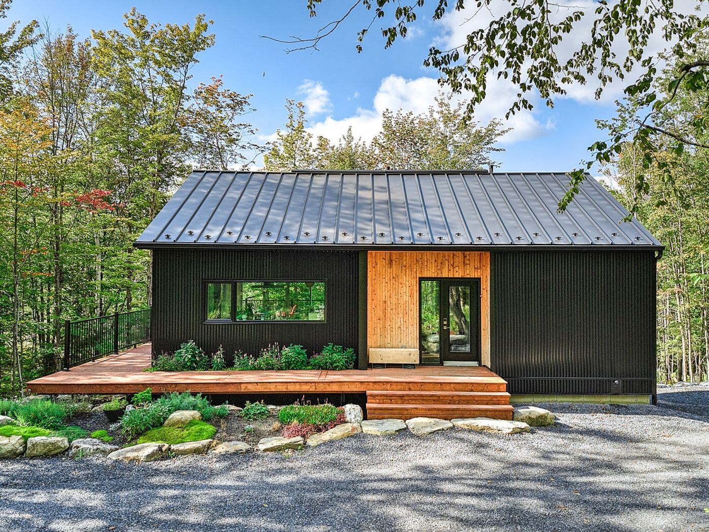 La maison écologique RDC + RDJ de Luce et Paul, se fond parfaitement avec son environnement. Les propriétaires souhaitaient quitter la métropole et s’installer sur leur beau terrain, dans les contreforts du Mont Orford. Leur maison certifiée Novoclimat se distingue par ses lignes franches, structurées et par des teintes contrastées : le tout crée des espaces élégants, modernes sans être froids.