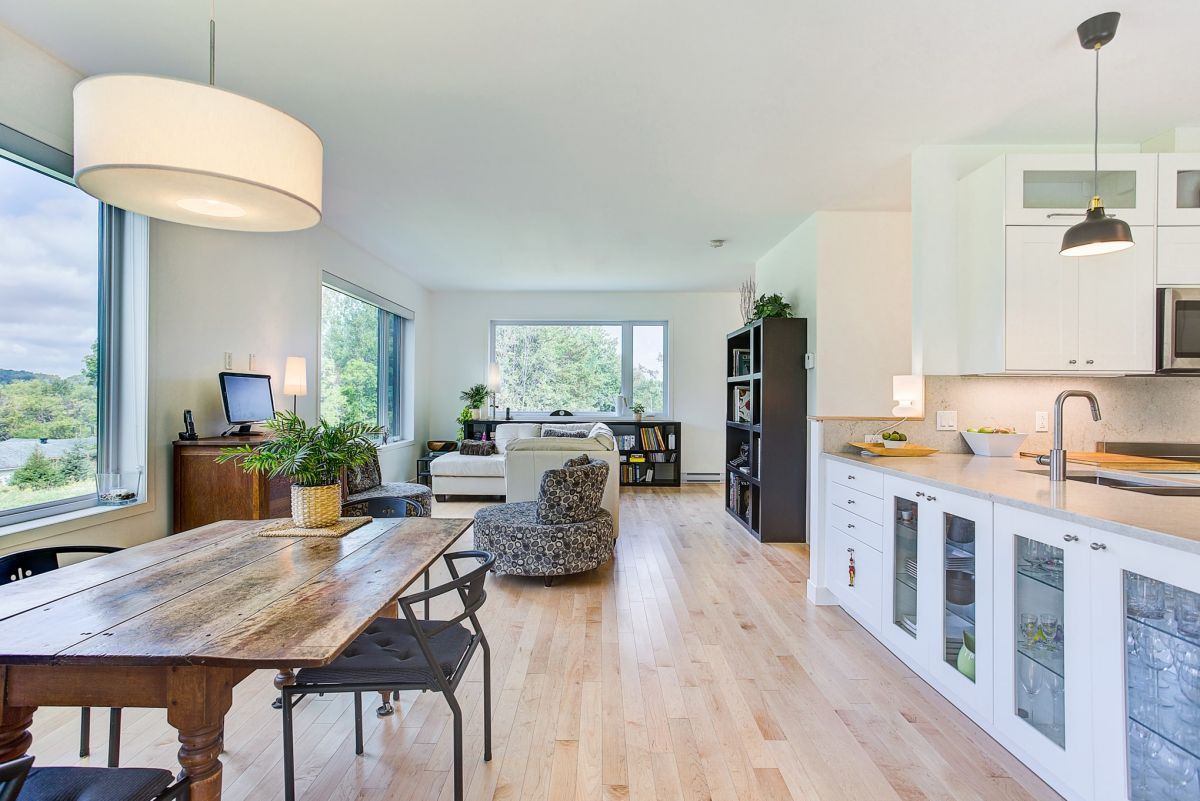 À la fois rustique et chic, cette maison familiale au style farmhouse offre à ses habitants un univers de vie lumineux, accueillant et fonctionnel. La conception solaire passive s’épanouit pleinement sur ce terrain orienté vers le Sud-Est, procurant un grand confort et beaucoup de lumière en toute saison. Le jardinage et la vie dehors font partie du mode de vie de Ginette et Martin : l’accès vers l'extérieur se devait d’être facilité à chaque étage. La terrasse du rez-de-chaussée est contiguë aux aires de vie et mène fluidement au terrain. Au rez-de-jardin, l’entrée de type mud-room, est adjacente au garage mais aussi à la salle de lavage : pratique pour entrer dans la maison quand on a joué dans la terre !