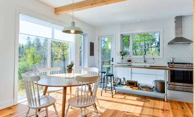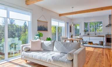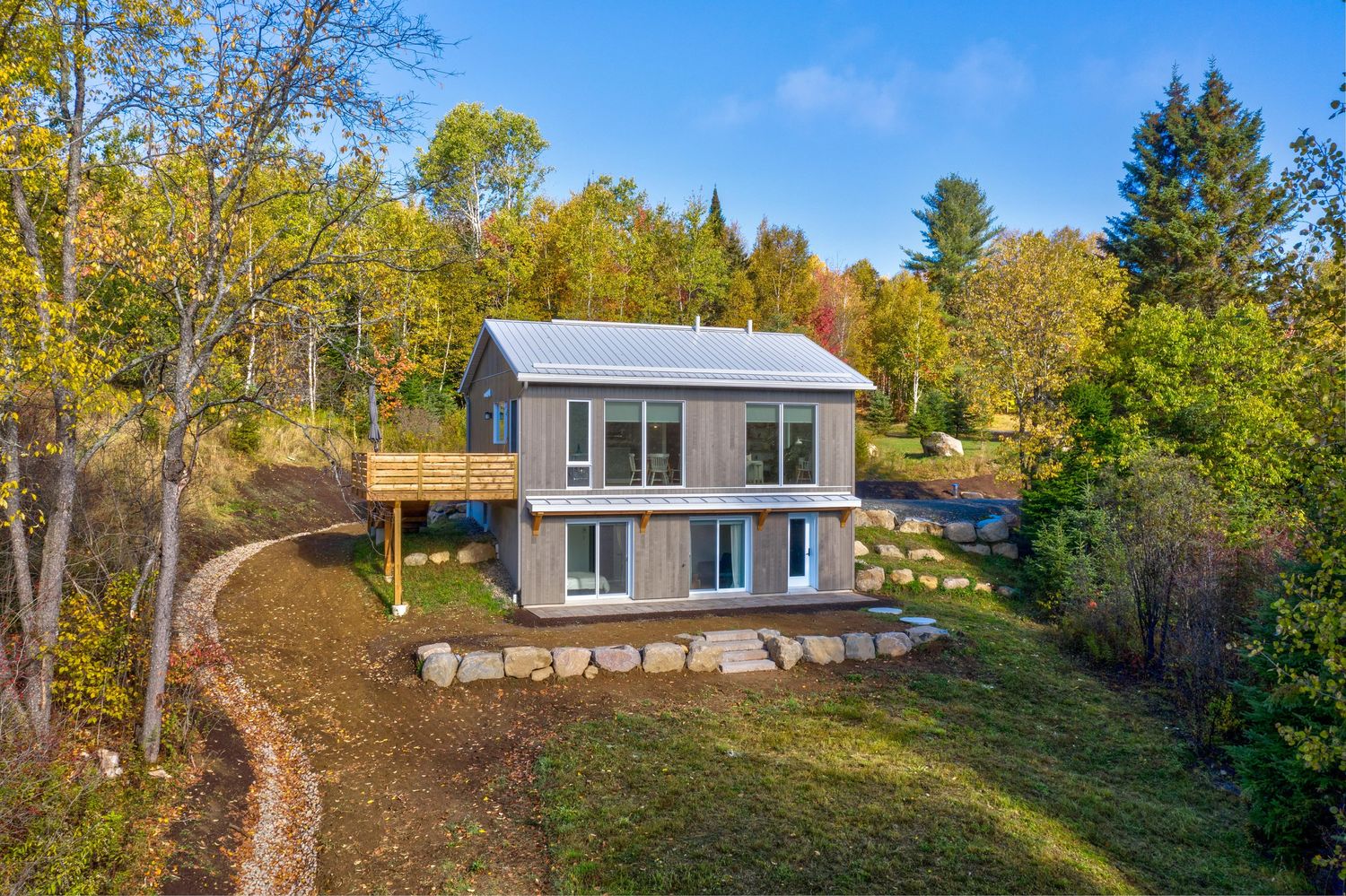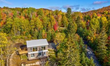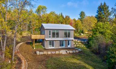 Un rez-de-jardin et un rez-de-chaussée de 702 pieds carrés chacun, composent cette maison optimisée. Les pièces principales sont ouvertes et abondamment fenestrées, offrant une vue panoramique sur la nature alentour.