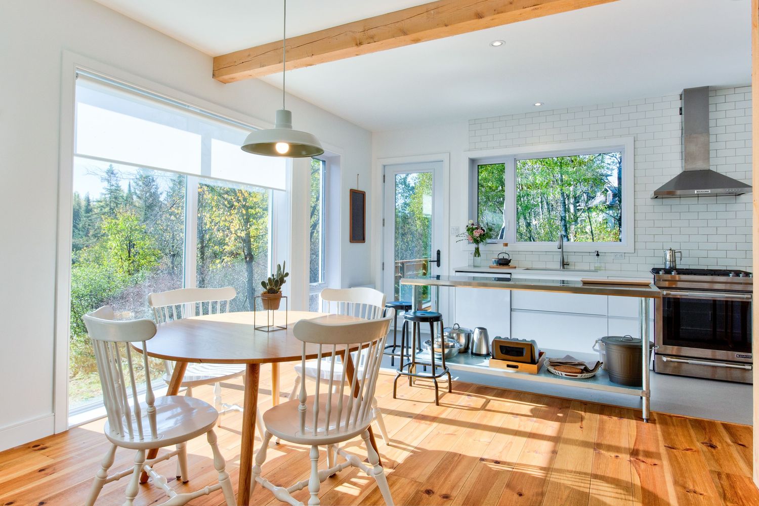 Un rez-de-jardin et un rez-de-chaussée de 702 pieds carrés chacun, composent cette maison optimisée. Les pièces principales sont ouvertes et abondamment fenestrées, offrant une vue panoramique sur la nature alentour.