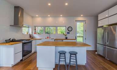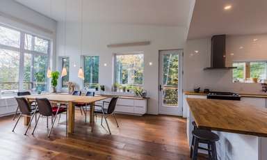 Un navire surplombant la rivière... Ève et Jean, deux personnes créatives, voulaient un projet qui se démarque, qui ait du caractère, tout en demeurant pragmatiques et en se donnant une priorité budgétaire bien définie. Défi relevé, le tout certifié LEED et Novoclimat !