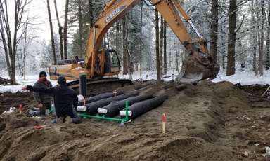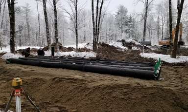 Le site exigeant que le système septique soit alimenté par une station de pompage, une alimentation avec système de distribution sous faible pression (SDSFP) permet une distribution équilibrée autant entre les rangées de conduites que tout au long des conduites. Cette distribution uniforme allonge la durée de vie du système.