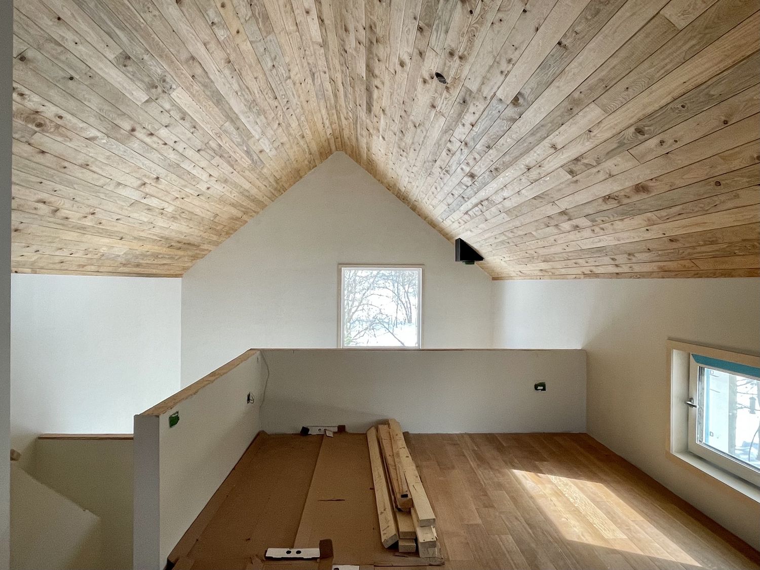 Rocket avait le mandat de construire l'enveloppe d'une maison toute simple. Elle devait être étanche, bien isolée, saine et super performante, un peu à la "Pretty Good House", et surtout travailler avec un budget très serré. Après un test d'infiltrométrie de 0.27 ACH50, et une consommation énergétique minime, on peut dire que c'est mission accomplie!