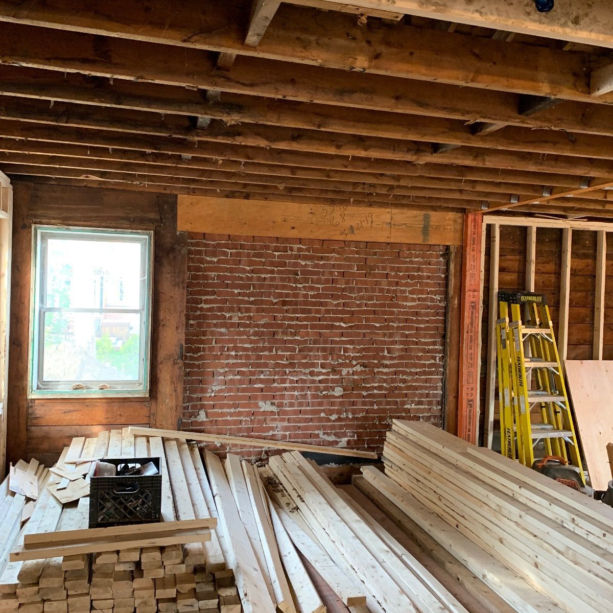 Suite aux travaux de fondation, les façades sud et est ont été décapées puis reconstruites par nos équipes de charpenterie-menuiserie. Compte tenu des nouvelles conceptions architecturales, l'ensemble du bâtiment a été consolidé structurellement pour faire place aux nouvelles divisions intérieures. En moins de 3 mois, le pavillon Gérald a été reconstruit et prêt à être habité.