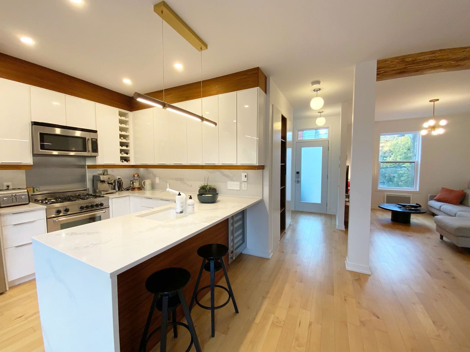 Les propriétaires rêvaient de transformer leur Triplex situé à Verdun en modifiant tous les éléments architecturaux et l'aménagement sur les trois étages. L'objectif était d'intégrer deux appartements, le premier situé au rez-de-chaussée, à des fins locatives, et le second, occupé par les propriétaires situé au 1er et 2ème étage.