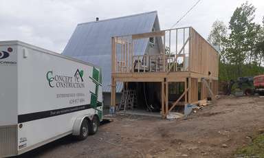 Agrandissement d'un chalet sur 2 étages sur le bord du lac Kénogamie. Recherches associées Travaux - Extérieur Québec/Lévis (Ville de Québec) Agrandissement