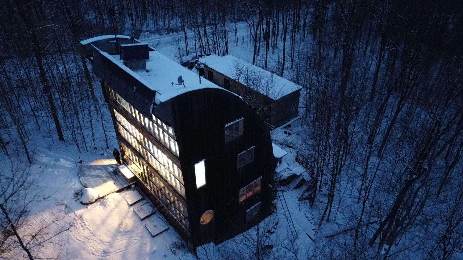 Conçue et construite en 2012, par Sébastien Loulou, Ing. (prés. de TechniVert Ing), La Vague s'élève dans les bois francs pour capter le soleil des Laurentides. Autonome pendant 8 ans, elle a été une source de défis énergétique et un tremplin d'idées et de solutions innovantes et adaptées. Pour des raisons économiques et pratiques, elle a été raccordée au réseau d'HydroQuébec l'année dernière.