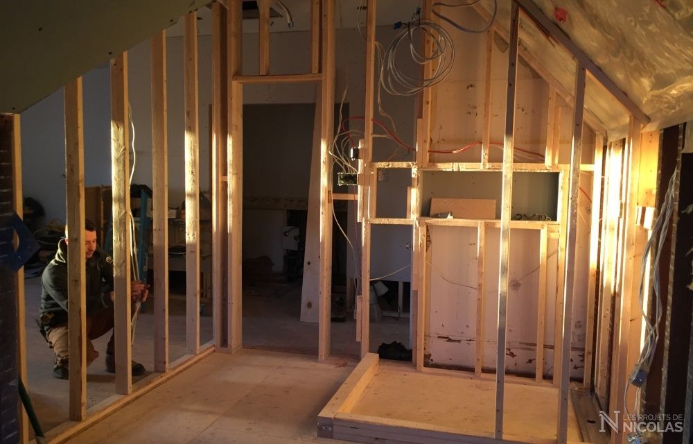 Le projet consistait à réaménager une chambre confortable et garde-robe, dans le grenier de la maison.  Le configuration d’une salle de bain complète était au centre du projet.