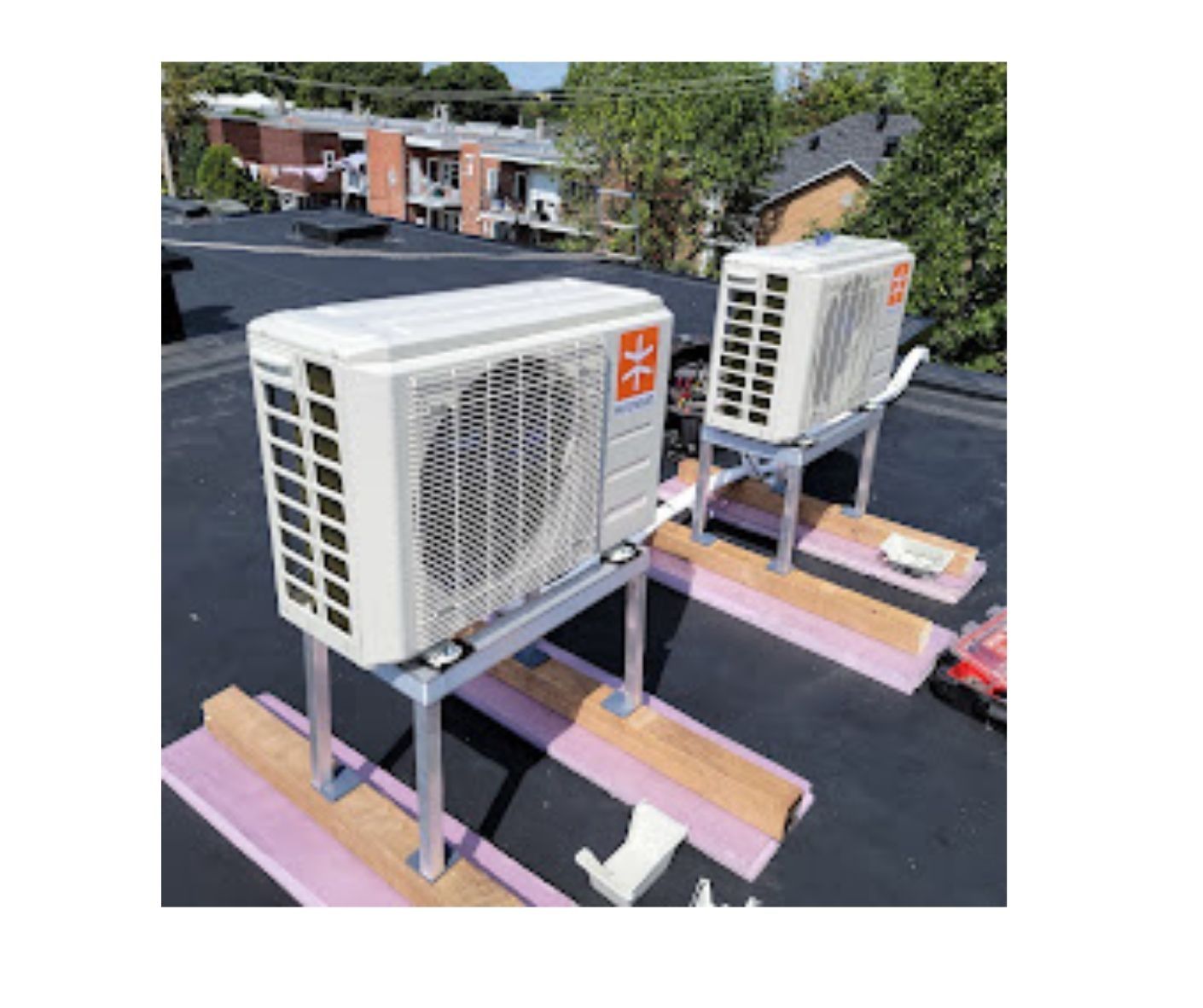 installation de deux thermopompe multizone sur toiture