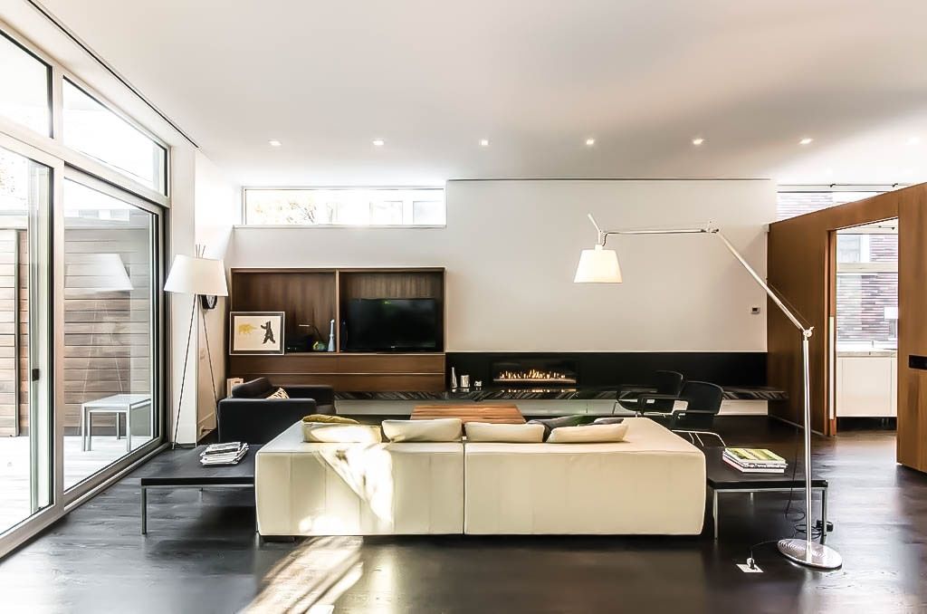 Deux nouvelles maisons unifamiliales dans un style résolument contemporain, jouxtant un bâtiment datant de 1920. De forme trapézoïdale, les deux maisons s’intègrent dans leur environnement bâti grâce à la noblesse des matériaux choisis, ainsi que par leur hauteur, limitée à celle des bâtiments voisins.   Un mur rideau sur trois étages inonde de lumière les généreux espaces intérieurs. Espaces de vie complètement ouverts et se prolongeant sur de grandes terrasses au toit.