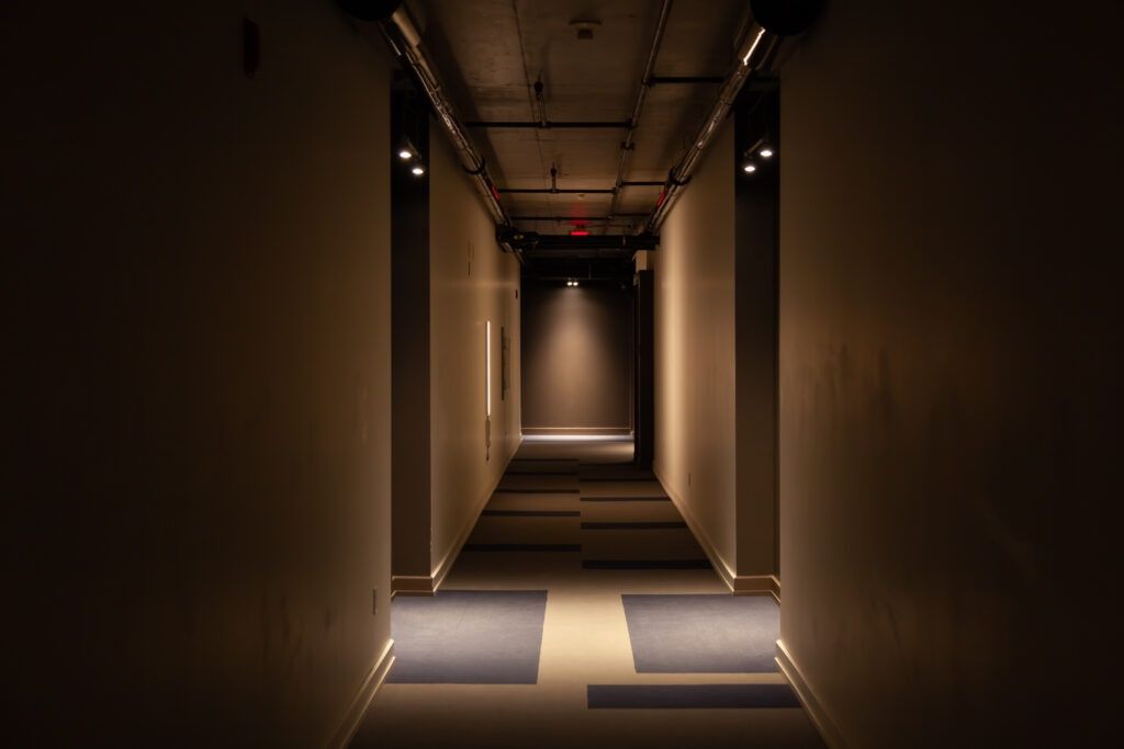 Réaménagement et design d’intérieur des espaces communs d’un immeuble en copropriété de 80 unités. Remplacement complet de l’éclairage, nouveaux revêtements de sol, nouvelle signature visuelle pour les alcôves d’entrée des logements et redynamisation des espaces d’attente face aux ascenseurs.