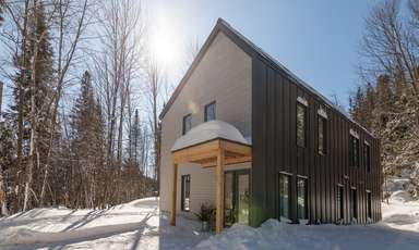 Les matériaux pour le revêtement des murs extérieurs et la toiture en pente, le bois et la tôle, sont authentiques, recyclables et ont une durée de vie supérieure. Quant aux matériaux pour l’isolation des murs et de la toiture, ils sont fabriqués à partir de matériaux naturels, soit les panneaux isolants SONOclimat Eco4 composés de fibre de bois, la cellulose issue de papier journal recyclé et la mousse isolante Airmétic Soya fabriquée à partir d’huile de soya et de bouteilles de plastique recyclées. La peinture intérieure de marque SICO Écosource à formule zéro COV assure une meilleure qualité d’air intérieur.