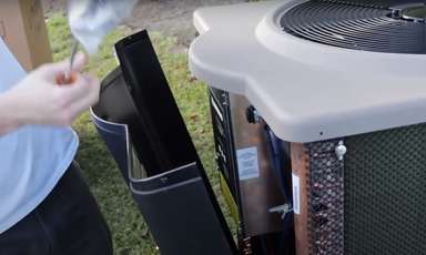 Enlever le couvercle d'une thermopompe pour chauffer une piscine au Quebec