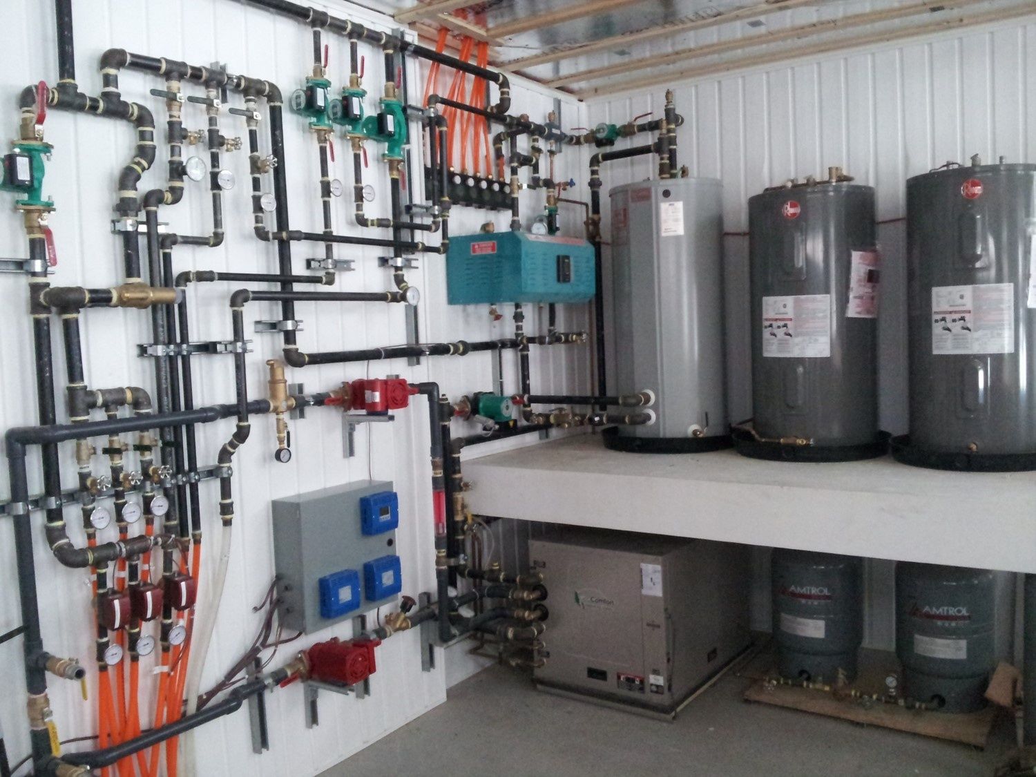 Implantation d'un réseau de plancher chauffant en tentem de 5 zones avec l'option de modulation intérieur/extérieur Recherches associées Salle mécanique Trois-Rivières/Shawinigan (Mauricie) Geothermie Zonage Plancher chauffant Thermopompe Confort