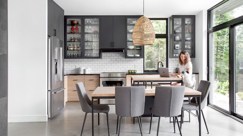 Construite au sommet du mont Chanteclerc à Sainte-Adèle, la Maison Écohab a été conçue comme résidence familiale pour une famille passionnée de plein air et de sports de montagne. D’une superficie de 1 600 pi² sur deux étages, elle comprend également 300 pi² supplémentaires aménagés dans les fermes de toit, où se trouvent une salle d’entraînement et de musique — une façon ingénieuse et économique de maximiser l’espace habitable.