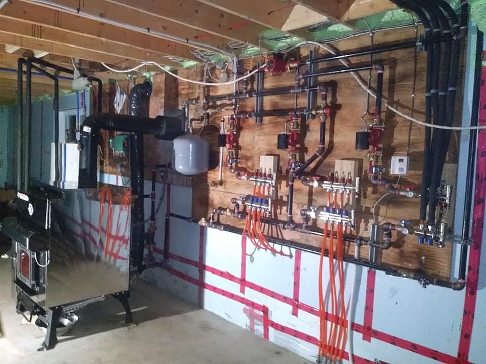 Raccordement de chaudière à l'eau chaude au bois sur un système de distribution de radiateur et de zone radiante avec production d'eau chaude domestique