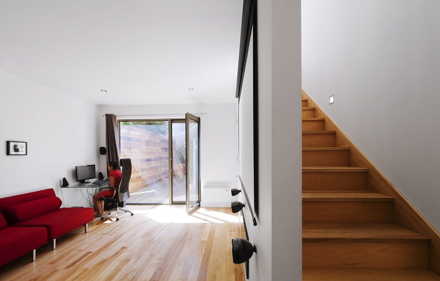 Un agrandissement qui augmente l’intimité Pour préserver l’intimité des lieux, un agrandissement a été construit dans la cour et fut relié à la maison existante par une passerelle au deuxième étage. Une haute clôture de bois latérale a aussi préservé l’intimité de la cour.