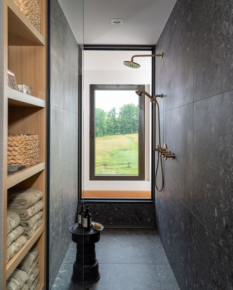La recherche de matériaux de finition intérieure locaux a été poussée à son maximum, et la réalisation a été faite par des artisans: béton poli, chêne blanc, tuiles de terrazzo, granit noir, éviers en béton coulés et acier patiné ont été utilisés dans l’ensemble du projet.
