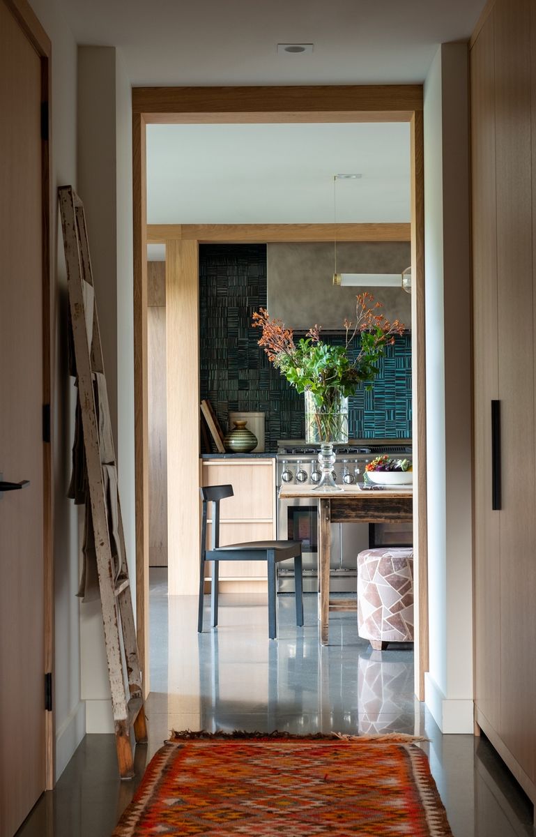 La recherche de matériaux de finition intérieure locaux a été poussée à son maximum, et la réalisation a été faite par des artisans: béton poli, chêne blanc, tuiles de terrazzo, granit noir, éviers en béton coulés et acier patiné ont été utilisés dans l’ensemble du projet.